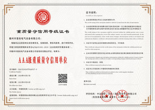 重质量守信用等级证书AAA级重质量守信用单位